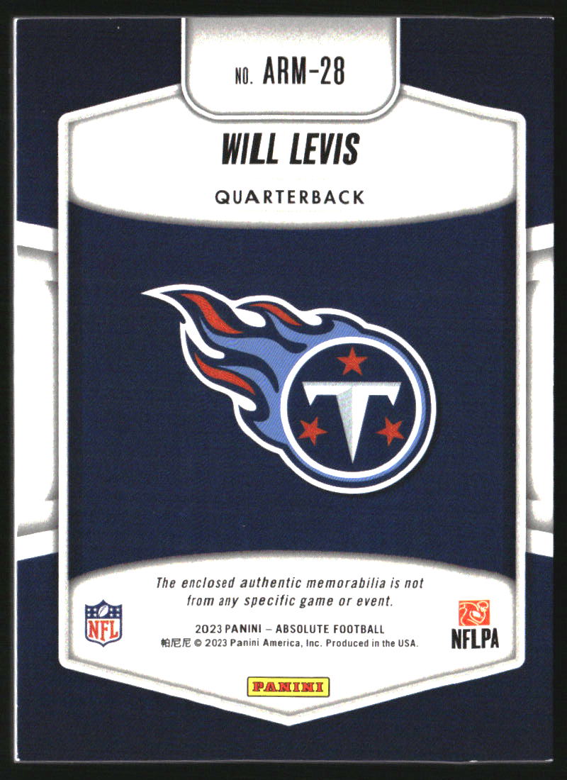 2023 Absolute Absolute Rookie Materials Holo Silver Will Levis RC /49