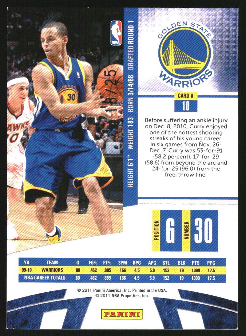 2010-11 Absolute Memorabilia Spectrum Platinum #10 Stephen Curry /25