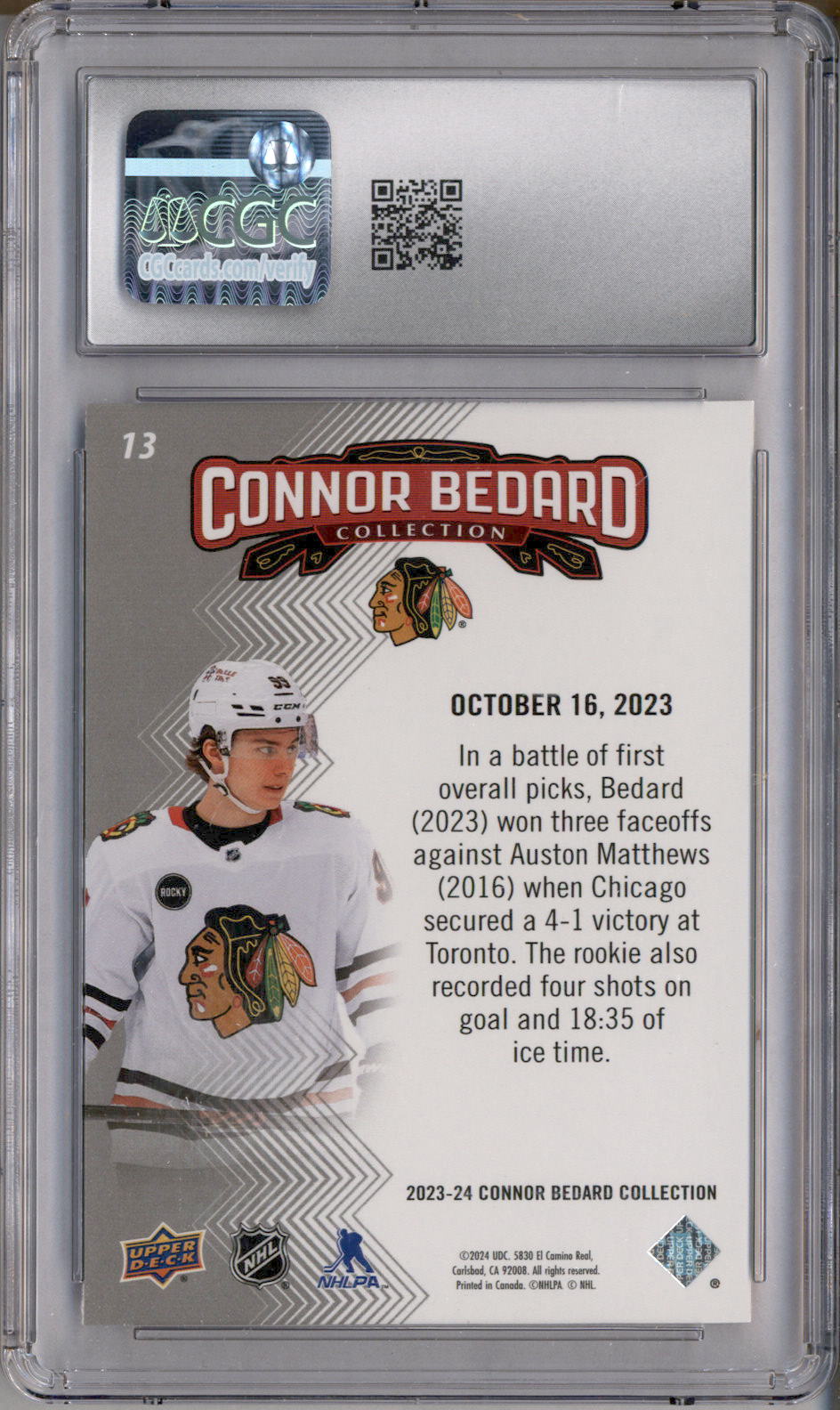 2023 Upper Deck Connor Bedard Collection Blackhawks Defeat Maple Leafs CGC 10