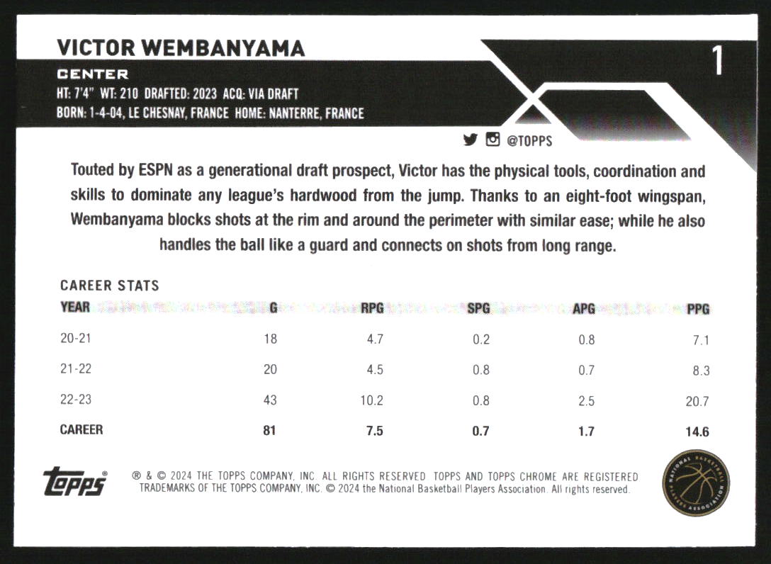 2023-24 Topps Chrome #1 Victor Wembanyama RC Rookie