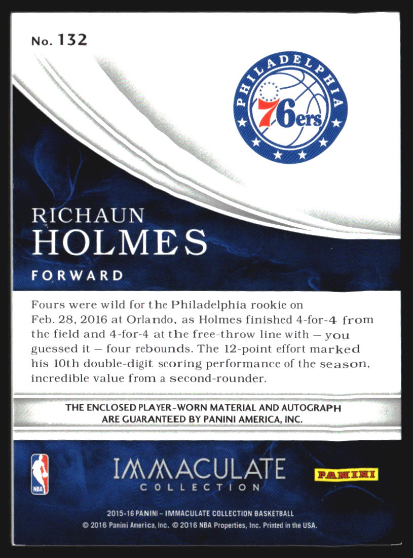 2015 Immaculate Collection Rookie Patch Auto Jersey Number Richaun Holmes RC /22