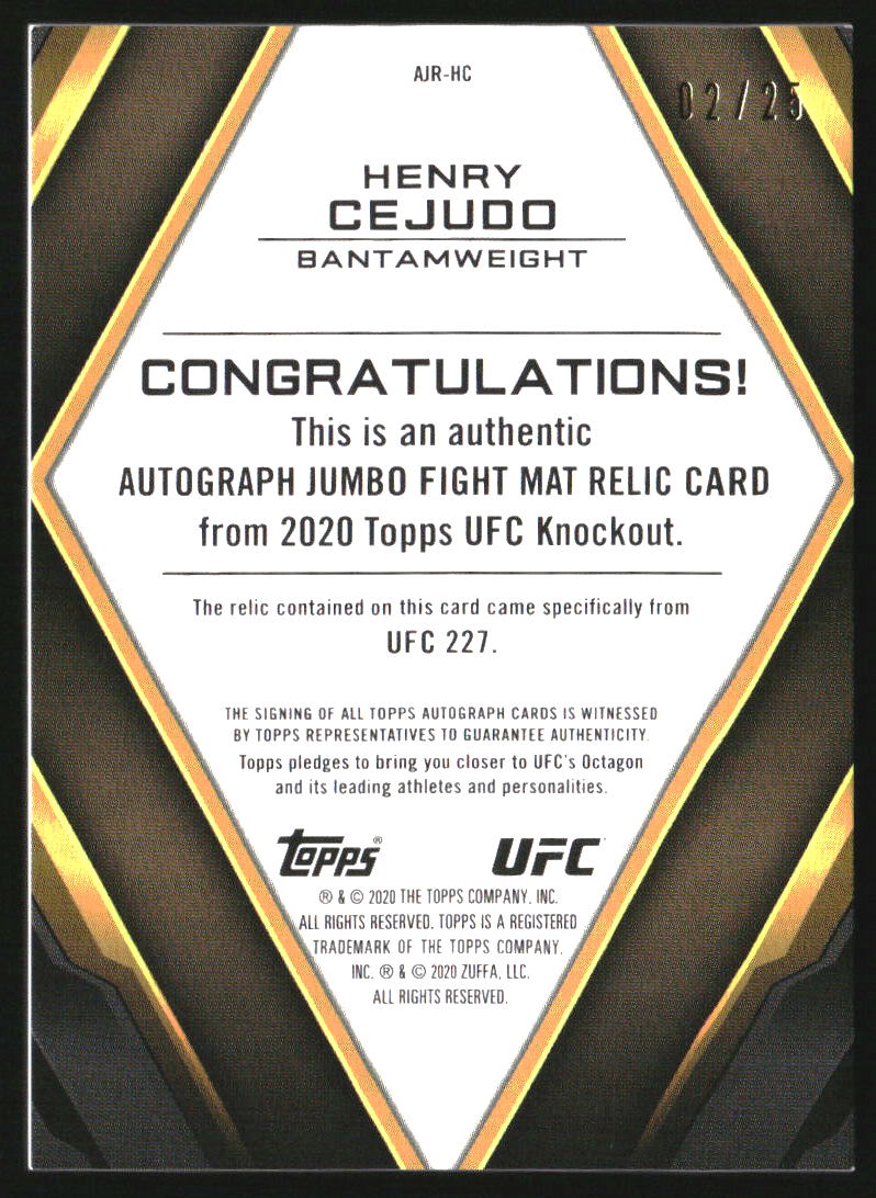 2020 Topps UFC Knockout Auto Fight Mat Relics Purple Henry Cejudo /25