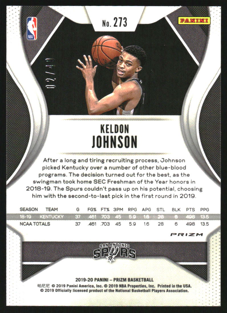 2019-20 Panini Prizm Prizms Orange #273 Keldon Johnson RC Rookie /49