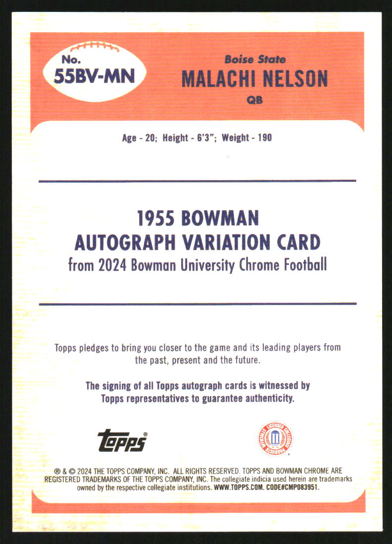 2024 Bowman Chrome University '55 Bowman Auto Orange Malachi Nelson /25