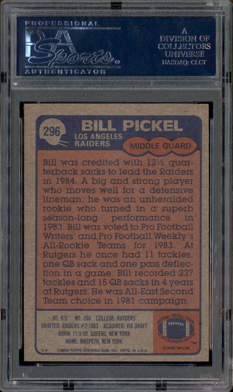 1985 Topps #296 Bill Pickel PSA 10