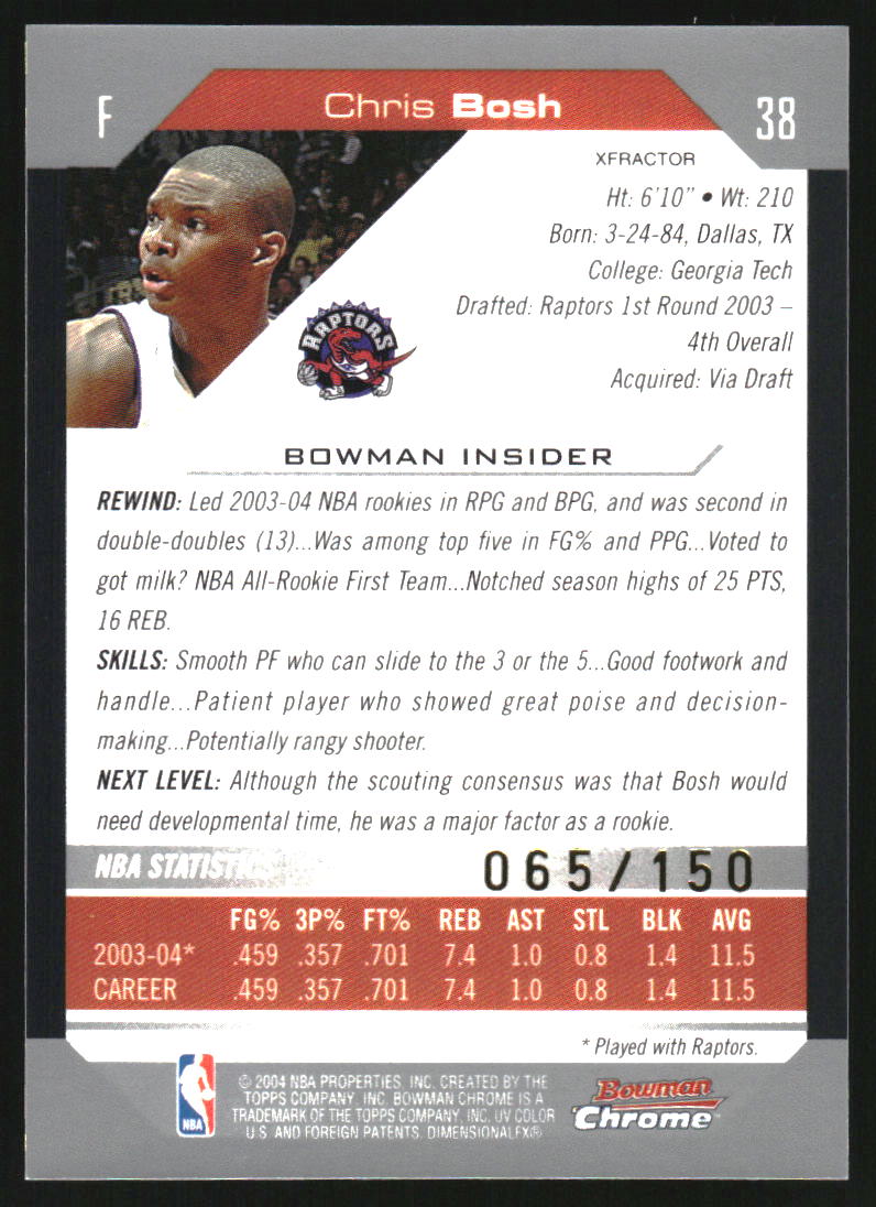 2004-05 Bowman Chrome X-Fractors #38 Chris Bosh /150