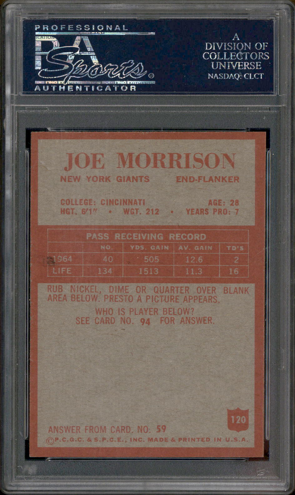 1965 Philadelphia #120 Joe Morrison PSA 8