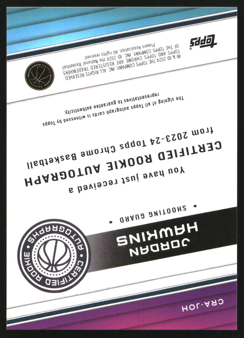 2023-24 Topps Chrome Rookie Autographs #CRAJOH Jordan Hawkins RC Auto