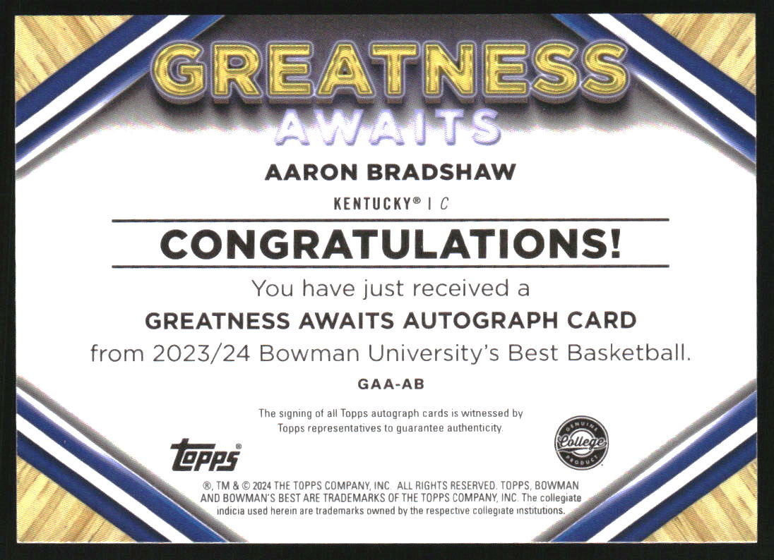 2023-24 Bowman's Best Greatness Awaits Auto Orange Geometric Aaron Bradshaw /25