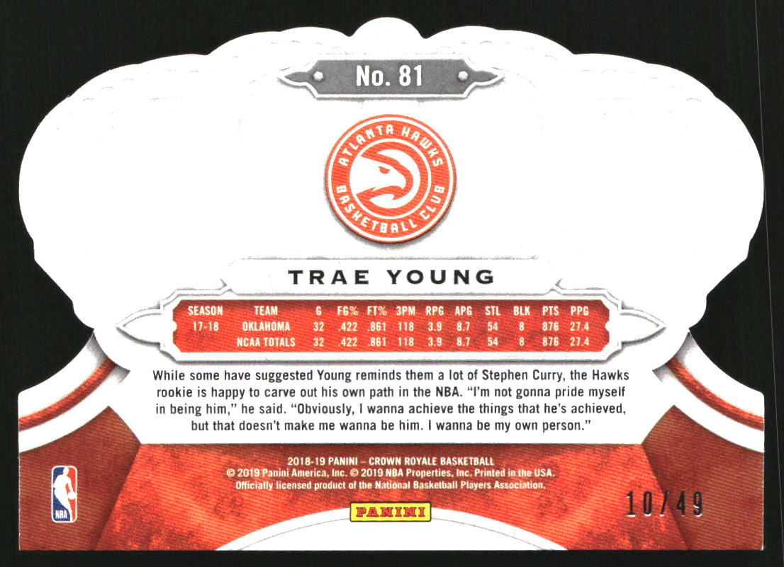 2018-19 Crown Royale Crystal Red #81 Trae Young RC Rookie /49
