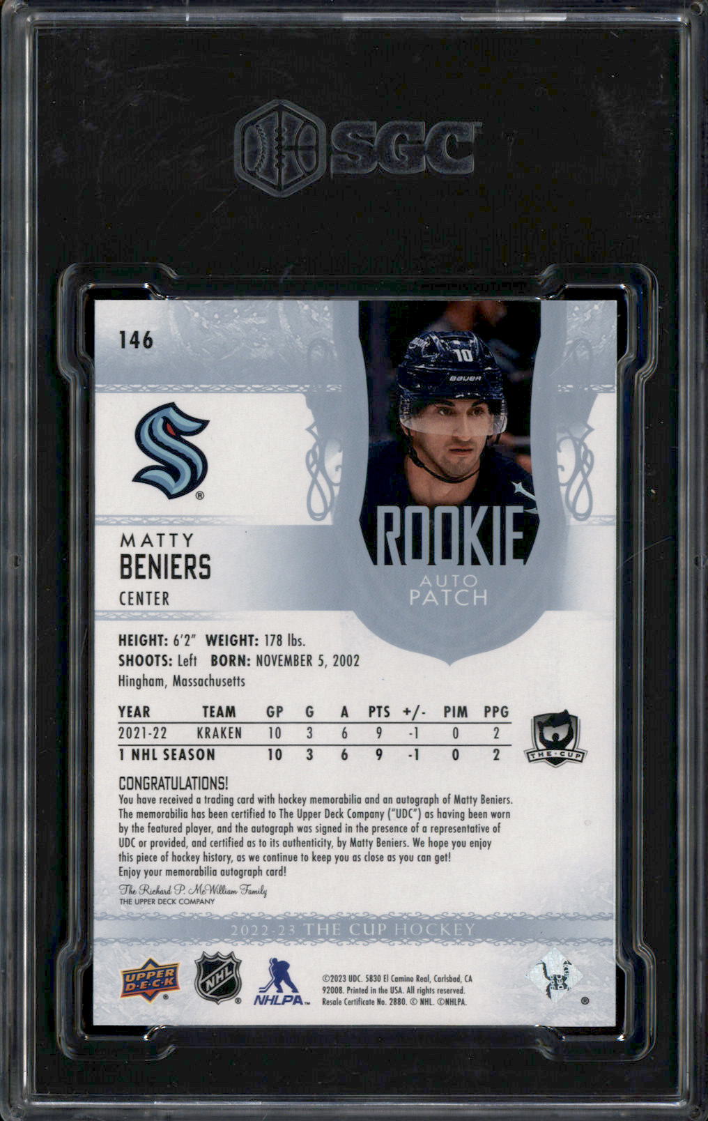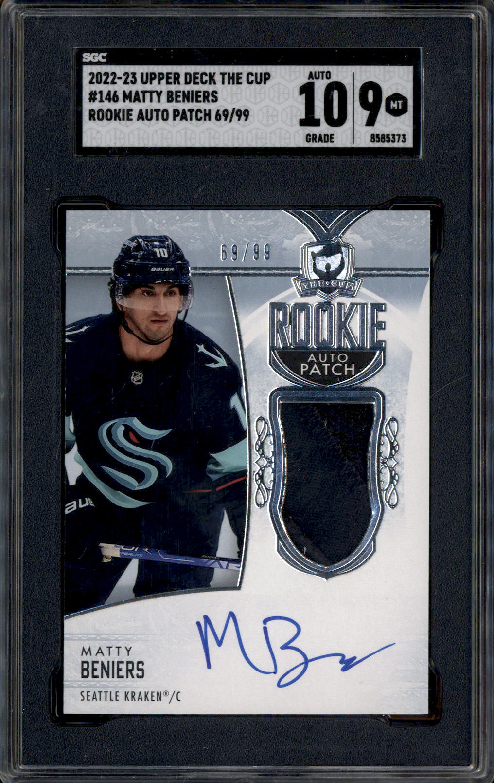 2022 Upper Deck The Cup Rookie Autograph Patch Matty Beniers RC Auto /99 SGC 9