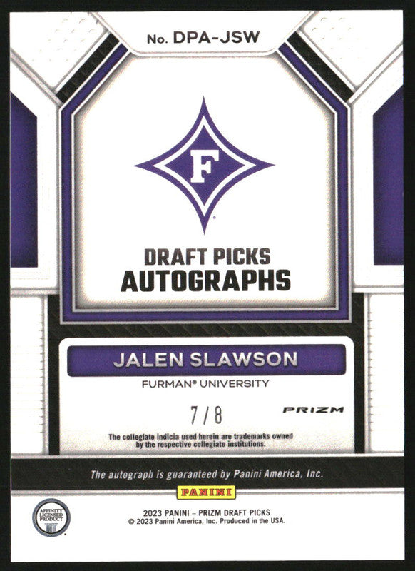2023-24 Panini Prizm Draft Picks Autograph Choice Green Jalen Slawson RC Auto /8