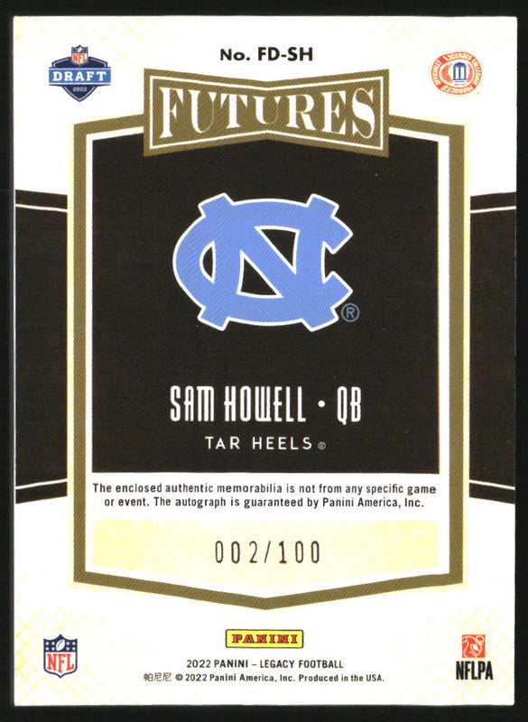 2022 Panini Legacy Futures Dual Patch Autographs Ruby Sam Howell RC Auto /100
