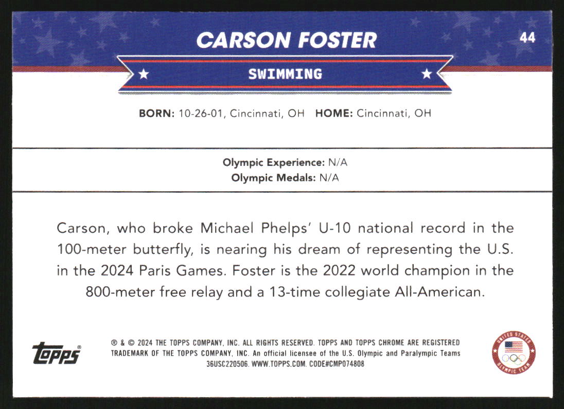 2024 Topps Chrome U.S. Olympic and Paralympic Hopefuls Orange Carson Foster /25