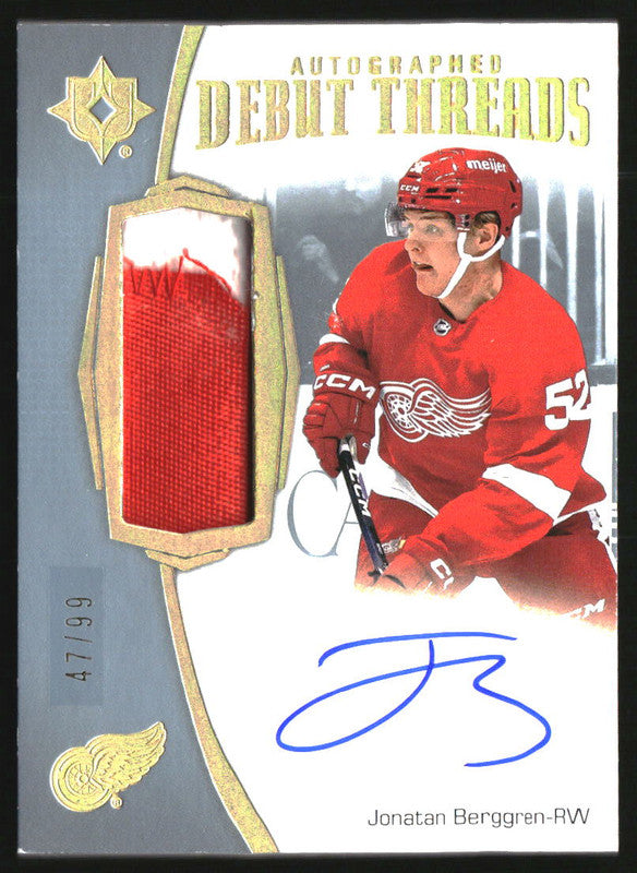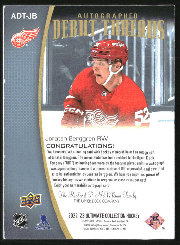 2022-23 Ultimate Collection Debut Threads Patch Auto Jonatan Berggren /99