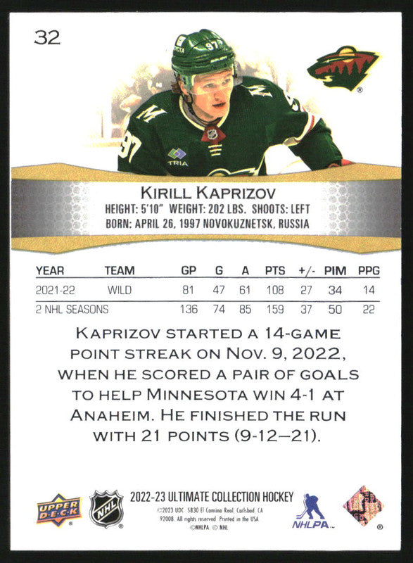 2022-23 Ultimate Collection Black #32 Kirill Kaprizov /5