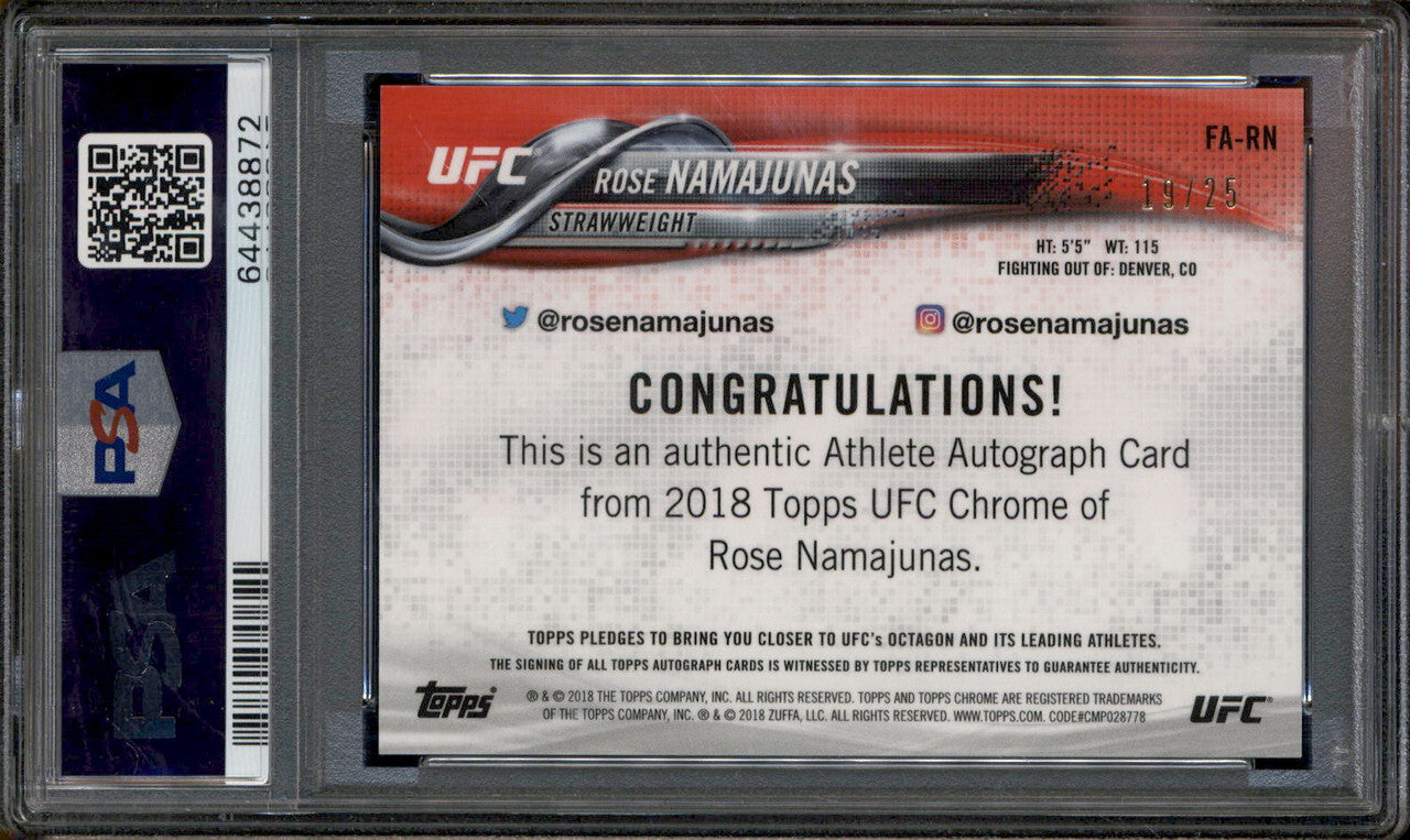2018 Topps Chrome UFC Autograph Orange Rose Namajunas Auto /25 PSA 10