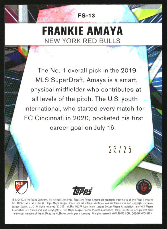 2021 Topps Chrome MLS Future Stars Orange Refractors #FS13 Frankie Amaya /25