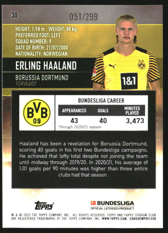 2021-22 Stadium Club Chrome Bundesliga Purple Refractors Erling Haaland /299