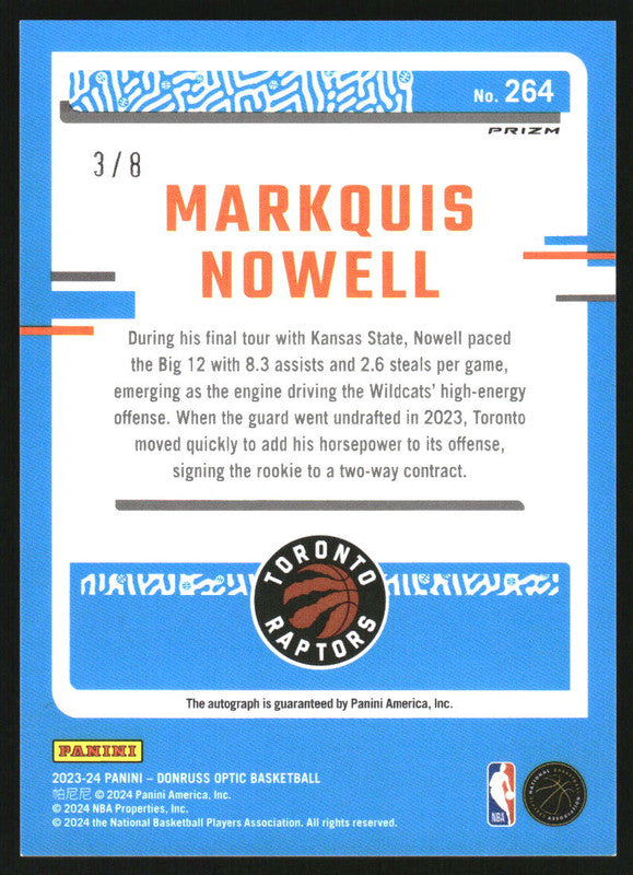 2023-24 Donruss Optic Choice Black Gold #264 Markquis Nowell RC Auto /8