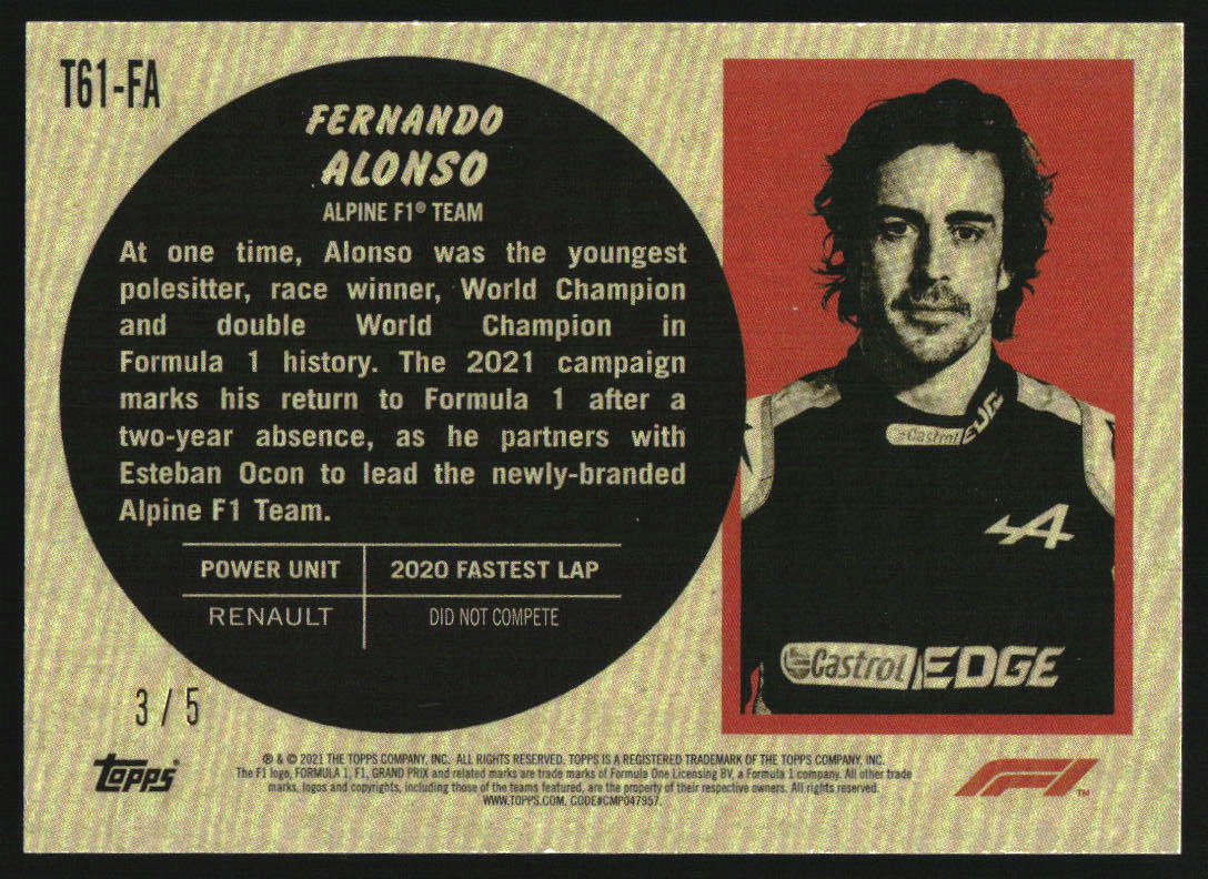 2021 Topps Formula 1 '61 Sports Cars Red Foil #T61FA Fernando Alonso /5