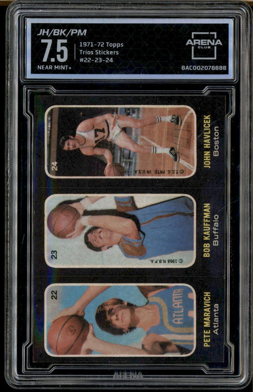 1971-72 Topps Trios Stickers Pete Maravich Bob Kauffman John Havlicek Arena 7.5