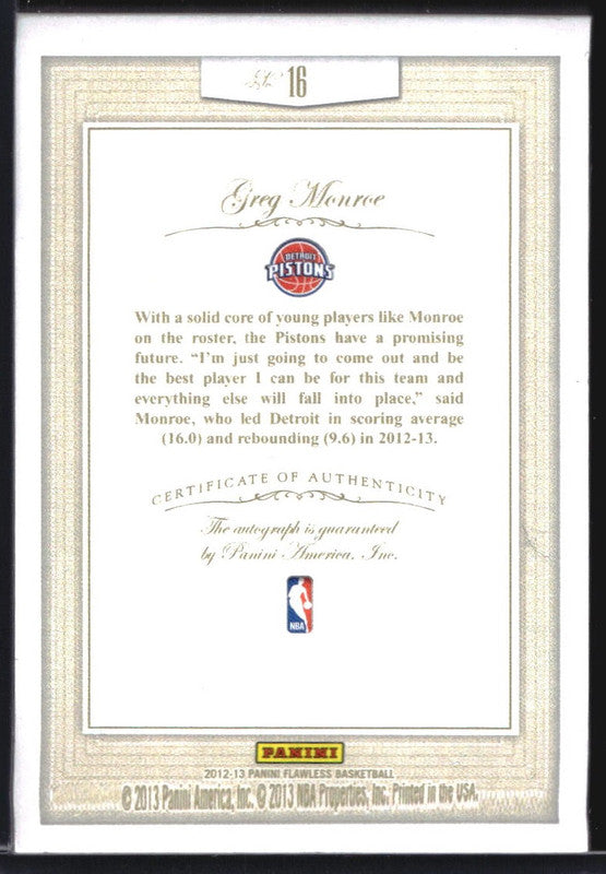 2012-13 Panini Flawless Inscriptions Platinum Greg Monroe Auto 1/1