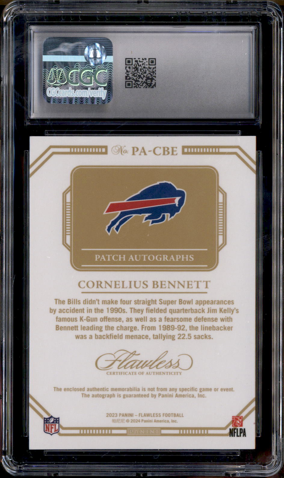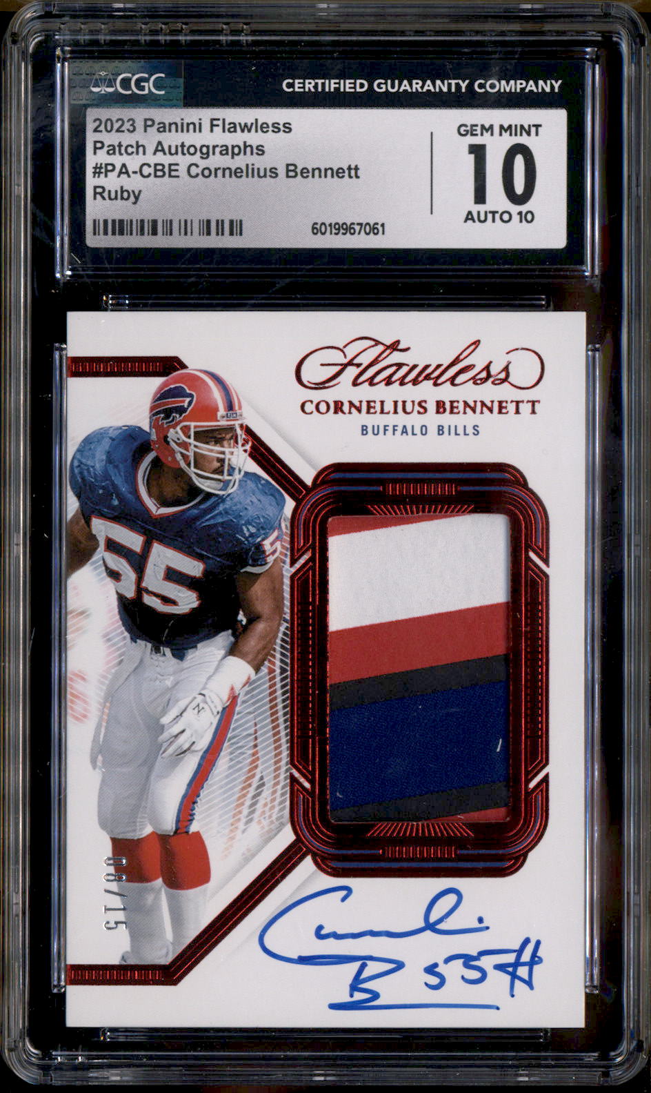 2023 Panini Flawless Patch Autograph Ruby Cornelius Bennett Auto /15 CGC 10