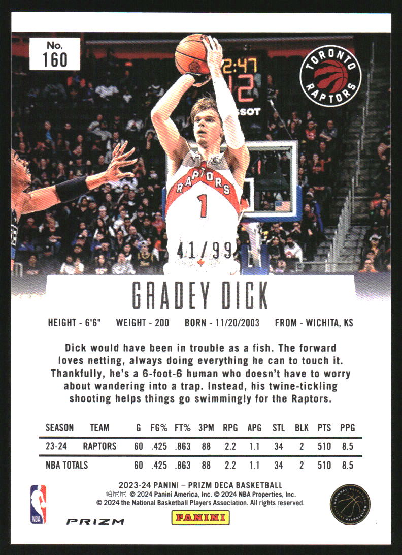 2023-24 Panini Prizm Deca Prizms Purple #160 Gradey Dick RC Rookie /99