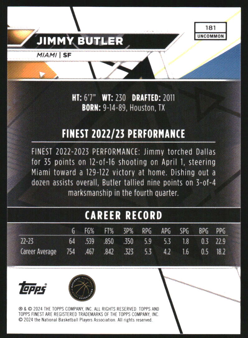 2023-24 Finest Red Black Vapor Refractors #181 Jimmy Butler /10