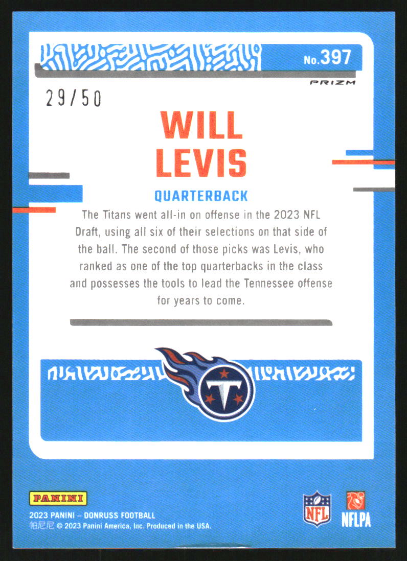 2023 Donruss Optic Rated Rookies Preview Purple #397 Will Levis RC /50