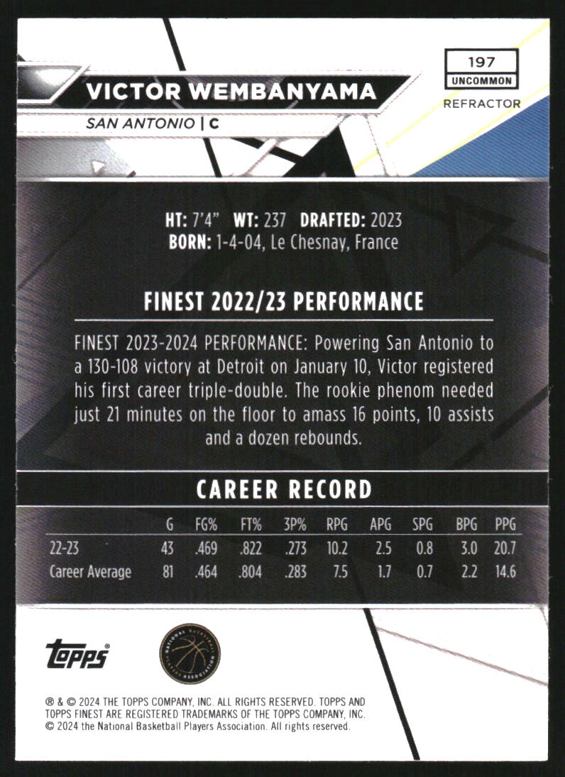 2023-24 Finest Refractors #197 Victor Wembanyama RC Rookie