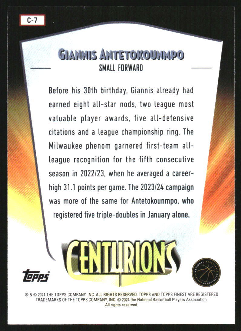 2023-24 Finest Centurions #C7 Giannis Antetokounmpo