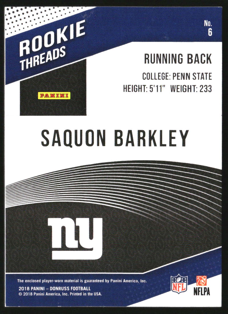 2018 Donruss Rookie Threads Green #6 Saquon Barkley RC