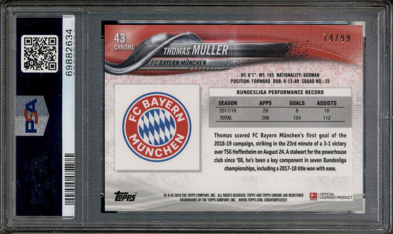 2018 Topps Chrome Bundesliga Green Refractor #43 Thomas Muller /99 PSA 10