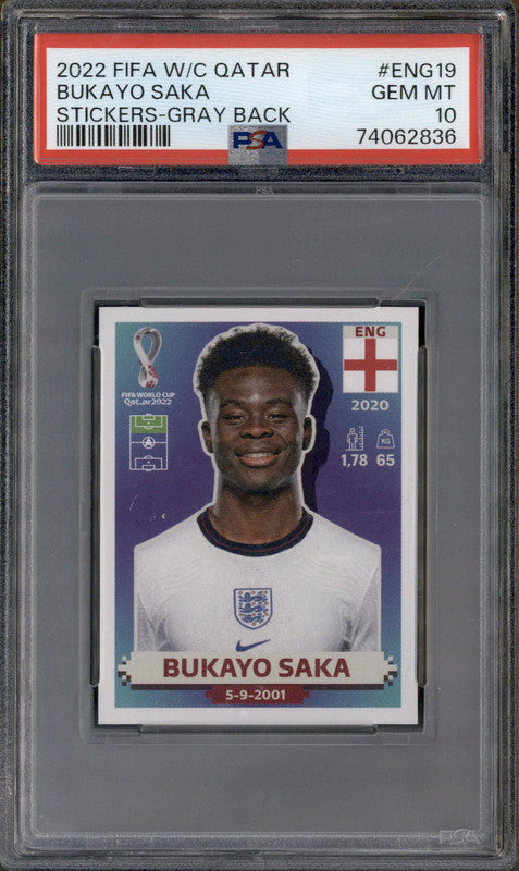 2022 FIFA World Cup Qatar Stickers Gray Back Bukayo Saka PSA 10