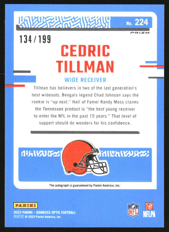 2023 Donruss Optic Rated Rookies Autographs #224 Cedric Tillman RC Auto /199