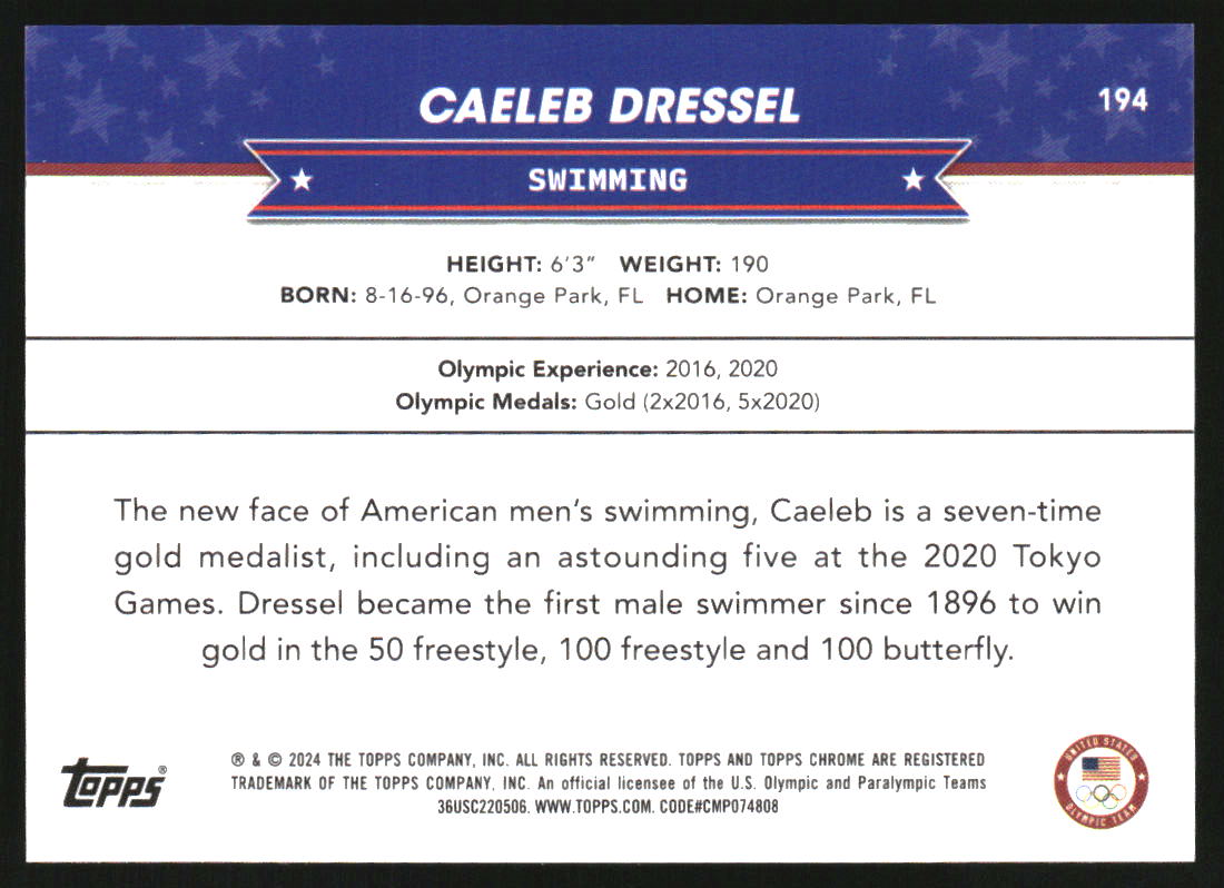 2024 Topps Chrome U.S. Olympic and Paralympic Hopefuls Orange Caeleb Dressel /25