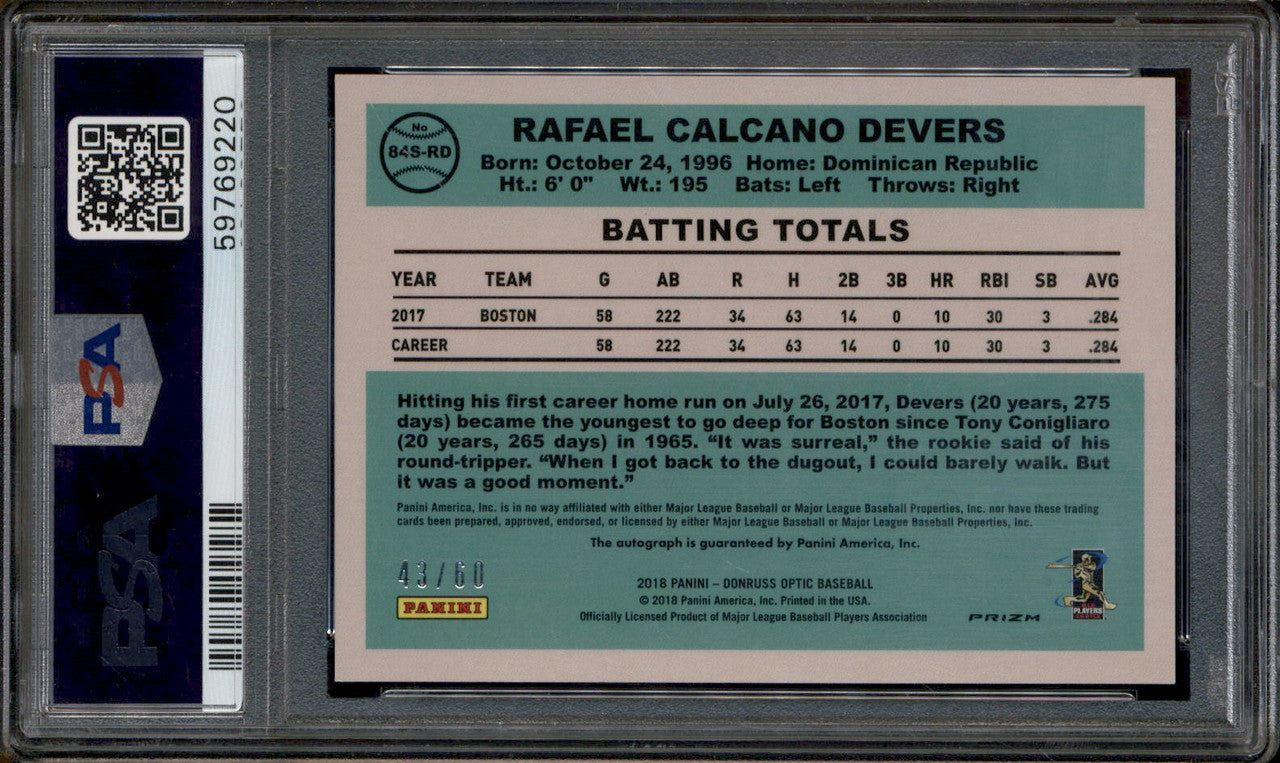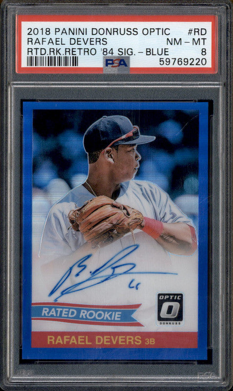 2018 Donruss Optic Rookie Auto Retro '84 Blue Rafael Devers RC /60 PSA 8