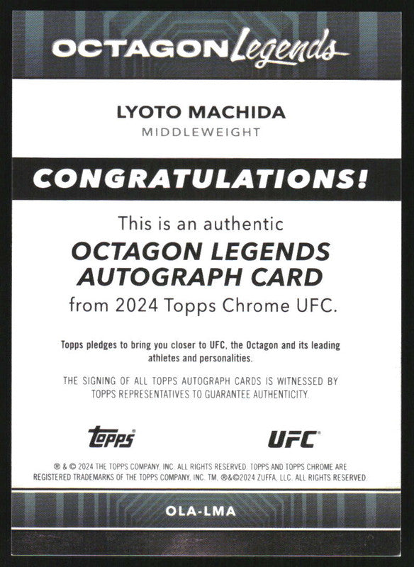 2024 Topps Chrome UFC Octagon Legends Auto Gold Refractors Lyoto Machida /50