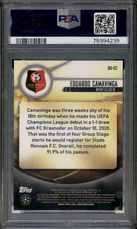 2020 Stadium Club Chrome UCL Glimpses of Gold Eduardo Camavinga RC PSA 10