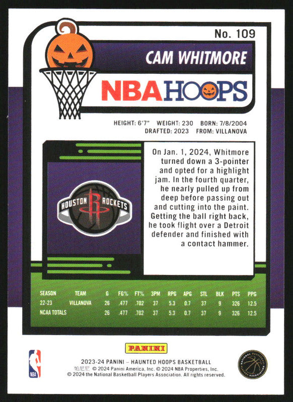 2023-24 Hoops Haunted Hoops Holo Candy #109 Cam Whitmore RC Rookie