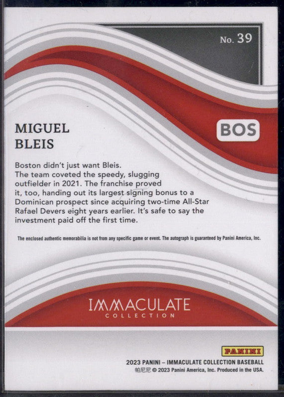 2023 Immaculate Collection Red #39 Miguel Bleis Jersey Autograph Auto /49