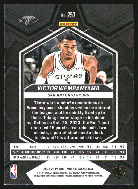 2023-24 Panini Mosaic #257 Victor Wembanyama RC Rookie