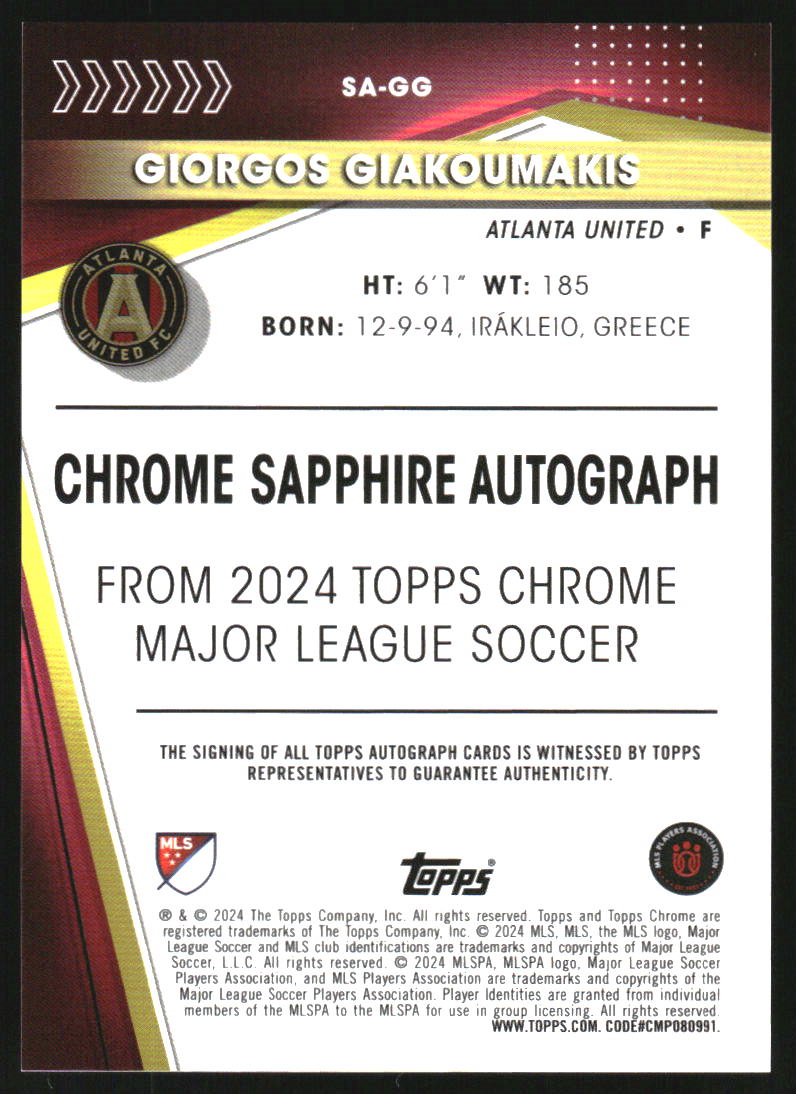 2024 Topps Chrome Sapphire MLS Autographs Black Giorgos Giakoumakis Auto /10
