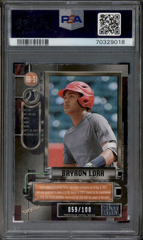 2021 Metal Universe Precious Metal Gems Bayron Lora /100 PSA 8