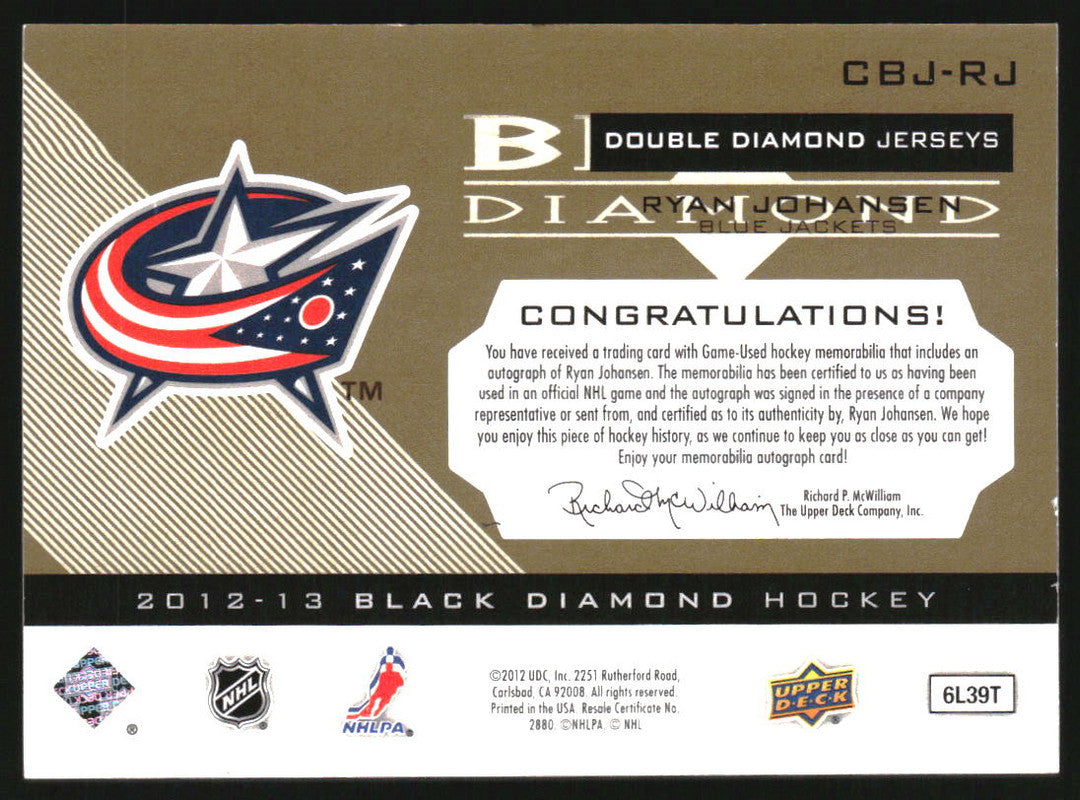 2012-13 Black Diamond Dual Jerseys Autographs #CBJRJ Ryan Johansen Auto /5