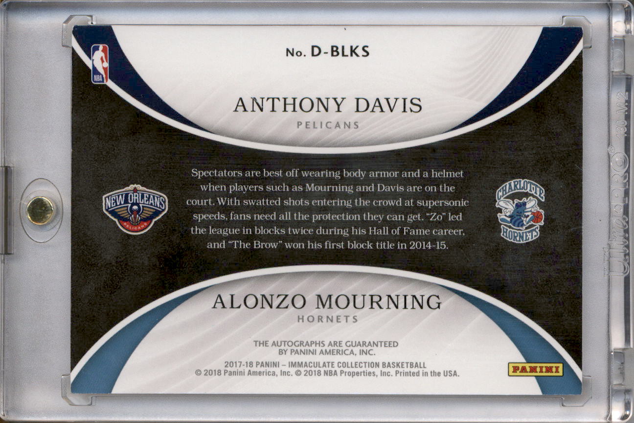 2017 Immaculate Collection Dual Autograph Alonzo Mourning Anthony Davis Auto /25