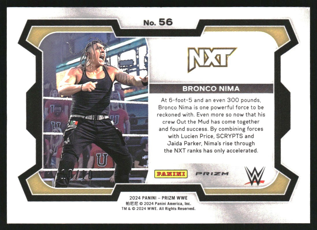 2024 Panini Prizm WWE Prizms Under Card Gold #56 Bronco Nima RC /10