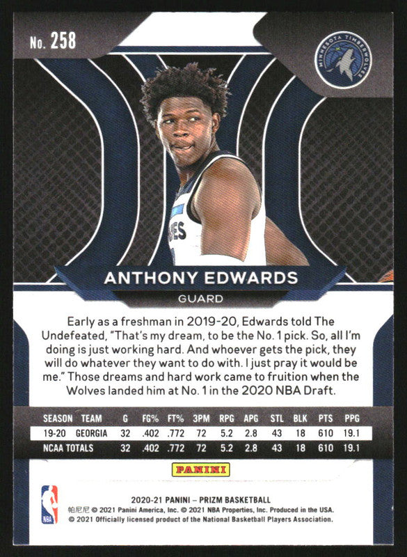 2020-21 Panini Prizm #258 Anthony Edwards RC Rookie